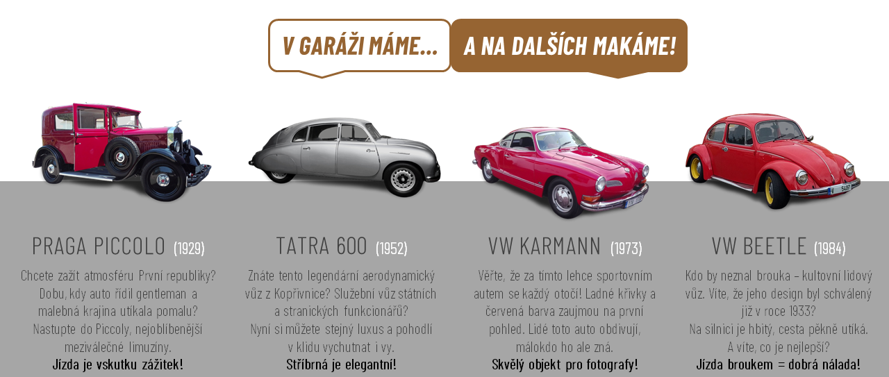 O nás Služby Naše vozy Galerie DOPORUČUJEME 🧭️ Benešov + 50km + Praha Prezentace vozů © 2020 - 2023 Hledám veterána